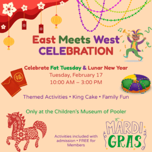 Celebrate Fat Tuesday and Lunar New Year at CMOP! Enjoy themed activities, king cake, and family fun! Only at the Children’s Museum of Pooler!