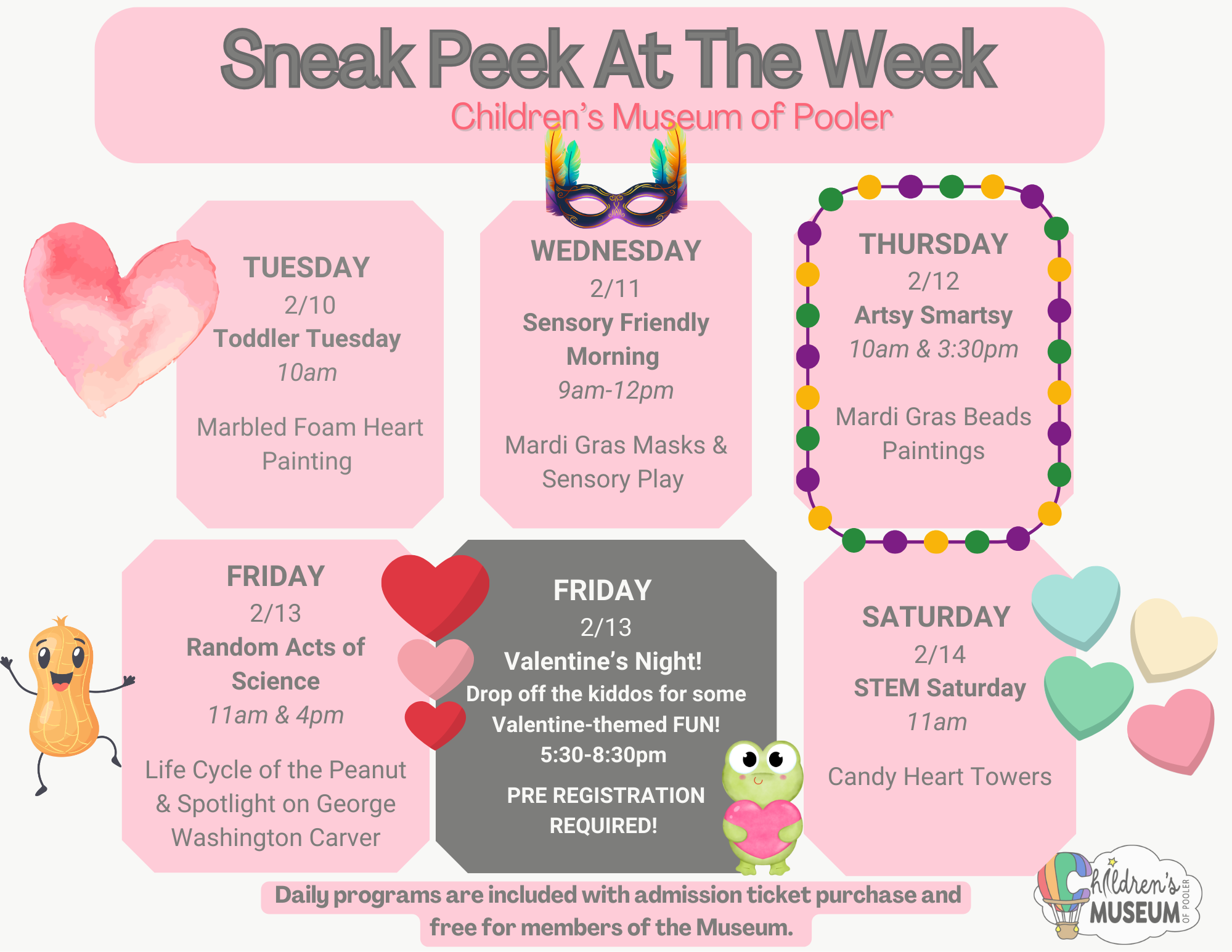 INCLUDES: PIZZA, VALENTINE’S CRAFTS,STEM Activities & PLAYTIME IN THE MUSEUM